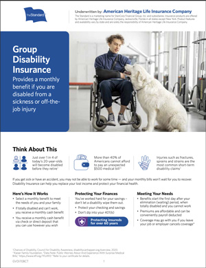 The Disability Income Plus is designed to help provide you with a monthly income benefit for the time period you select (3 or 6 months) as you recover. This plan supplements lost wages due to a covered injury or illness.